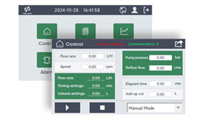 智能化操作系统,由繁入简 ● 产品内置新一代K₂P-Control软件系统,带来工业级人机交互体验 ● 通过配置压力传感器、流量计等配件,能够实现恒流、恒压模式 ● 具备分配功能,可定时定量输送流体 ● 具备数据记录、曲线分析、报警设置、审计追踪等多项功能模块 |